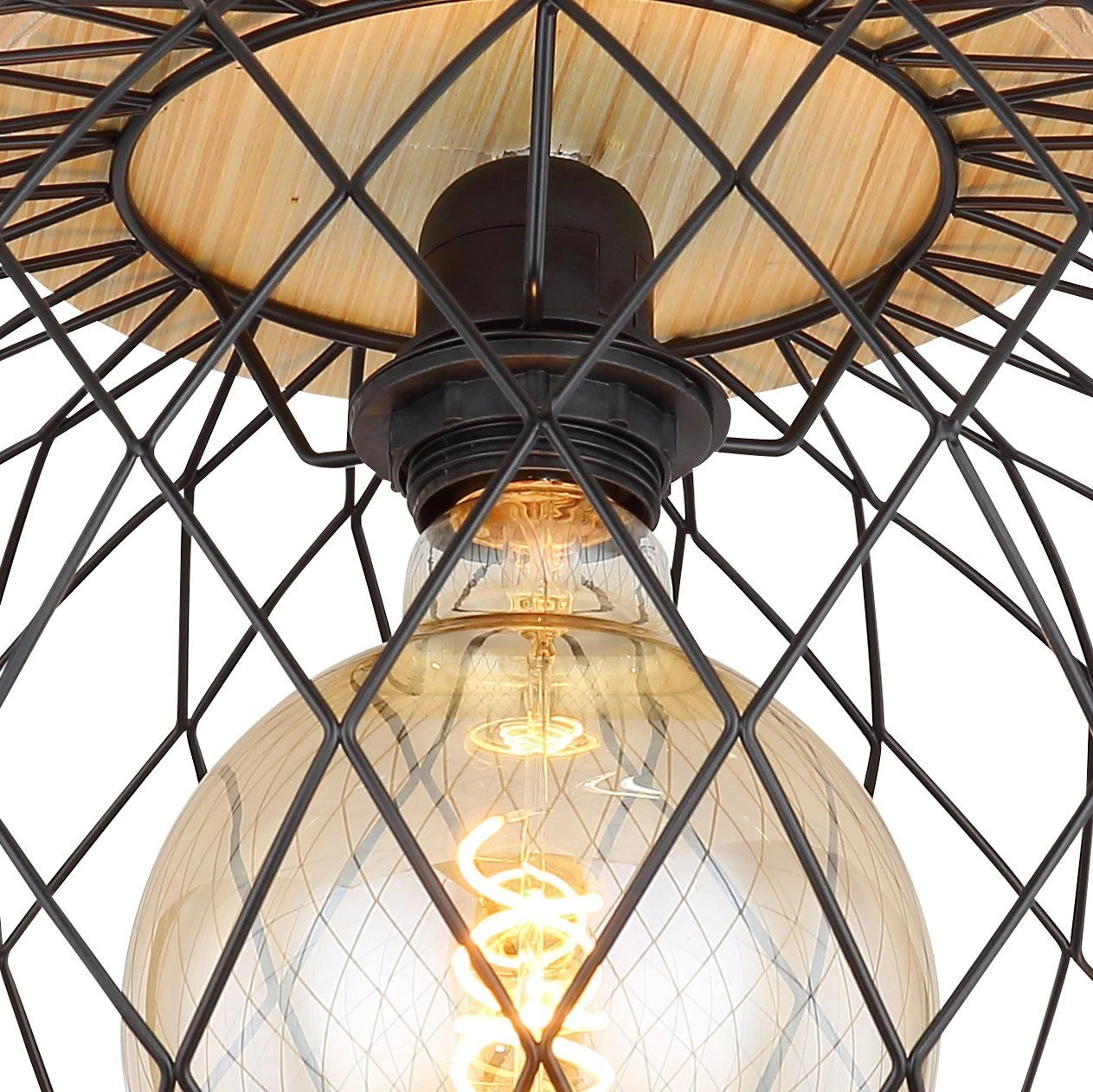 Le plafonnier LACKY est fait pour vous ! Une structure en métal noir sur un socle en bois, quoi de plus tendance ? Avec son design original, ce luminaire offre une luminosité exceptionnelle, réalisant de magnifiques ombres sur les murs. Nous pouvons parfaitement imaginer ce plafonnier dans une chambre, ou même dans un couloir pour compléter votre décoration intérieure. Cette lumière d’intérieur au diamètre idéal de 40 cm, saura vous séduire par sa couleur et sa forme et ne manquera pas d’apporter un vent de fraîcheur dans votre décoration intérieure. Notre astuce déco : pour un côté un peu vintage, optez pour des ampoules déco avec filaments. Luminaire équipé d’une douille E27 compatible avec une ampoule d’une puissance maximale de 60 W (ampoule non incluse). Dimensions : hauteur 33 cm x diamètre 40 cm.