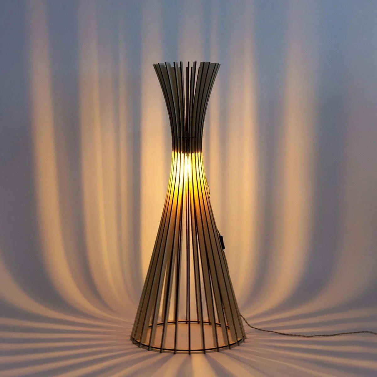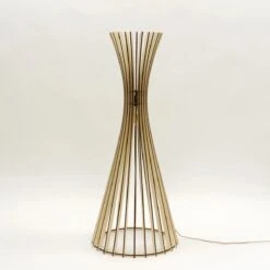Envie de profiter d’une jolie lumière tendance et originale ? En plus écoresponsable et made in France ? Alors la lampe à poser TIPI est sans aucun doute le luminaire qu’il vous faut ! Cette sublime lampe habillera parfaitement les espaces de votre aménagement intérieur en y apportant une touche design tout en élégance. On adore sa conception dans une forme organique et ses lamelles de bois (bois local certifié FSC) qui projetteront de belles ombres sur vos murs une fois la nuit tombée : ambiance chaleureuse assurée ! TIPI trouvera sa place dans votre entrée pour un éclairage fonctionnel, dans votre chambre en guise de lampe de chevet pour des soirées plus douces, ou encore dans votre salon pour accompagner et illuminer vos moments du quotidien. Le plus ? La marque Atelier Loupiote travaille en étroite collaboration avec des artisans régionaux pour pouvoir bénéficier de matériaux issus de la production française. Son objectif principal est de vous éclairer avec des luminaires tendances, confectionnés avec amour en France et surtout écoresponsables. Luminaire équipé d’une douille E27 compatible avec une ampoule d’une puissance maximale de 8W (ampoule non incluse). Dimensions : diamètre de la base 48cm x diamètre du haut 30cm x hauteur 118cm x longueur câble 250cm.