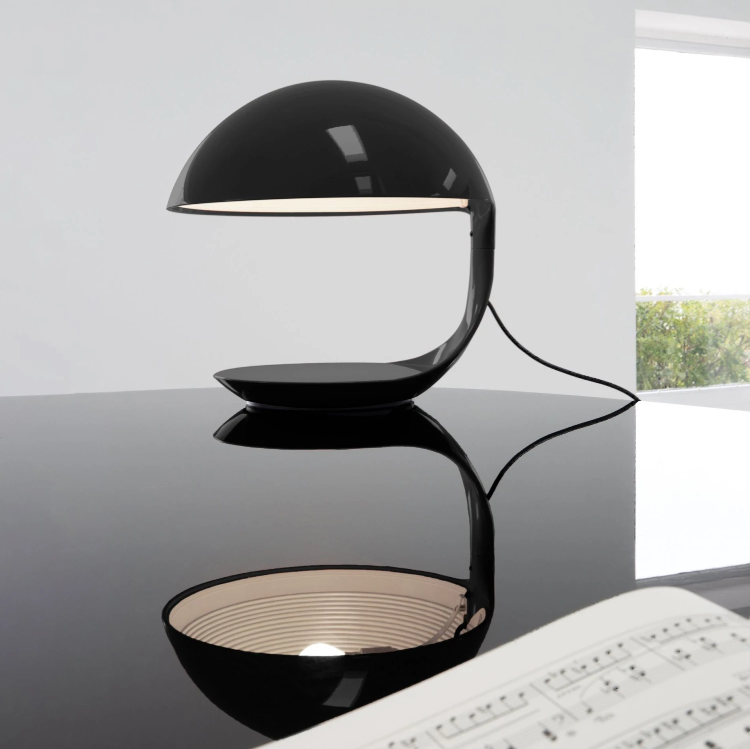 Designer en 1968 par Elio Martinelli, la lampe à poser Cobra est une véritable icône du design. Si vous l’observez bien, vous pourrez facilement apercevoir la silhouette d’un cobra prêt à bondir surtout lorsque son bras pivote. Cette lampe se compose de deux corps moulés en résine. Sa base en acier est reliée à la partie supérieure par un joint centrale, permettant une rotation de la partie haute à 360°. Idéal comme lampe de bureau, vous pourrez orienter la lumière selon votre envie. Dimension : Ø 40 x H 40 cm. Ce luminaire est équipé d’une douille E27 supportant une ampoule de 12 watts maximum.