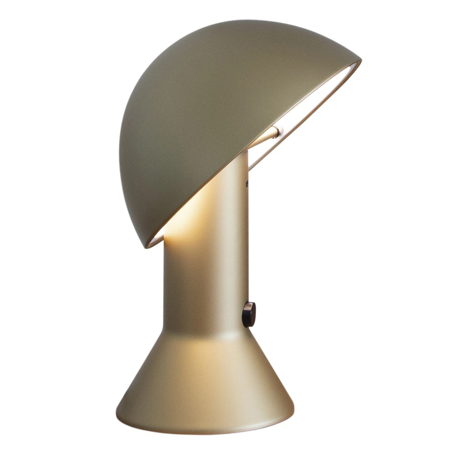 Dessiner en 1976 par Elio Martinelli, la lampe à poser Elmetto à un design très personnel. Son style « pop » est mis en valeur par ses formes géométriques et sa couleur. Entièrement fabriqué en résine pressée, Elmetto se compose d’une base conique et d’un abat-jour orientable, d’un simple geste de la main, vous pourrez diffuser une lumière directe ou indirecte, selon votre envie. Disponible en différents coloris. Dimensions : H 28cm / Ø 22cm. Equipé d’une douille E27 de 5.3W (ampoule non incluse).
