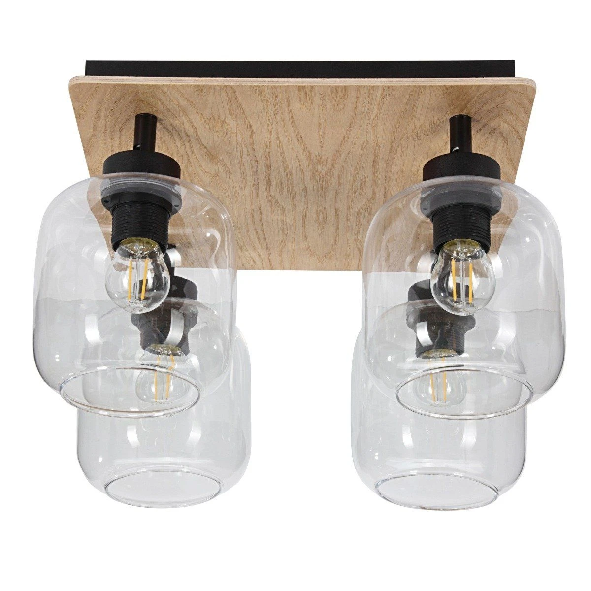 Vous rêvez d’un luminaire à votre image ? Qui corresponde parfaitement à votre intérieur et à vos goûts en matière de décoration ? Alors découvrez sans plus attendre notre collection de luminaires CUBUS WOOD ! Craquez pour ce beau plafonnier avec sa structure en bois naturel et ses quatre points lumineux dont les diffuseurs en forme de tube sont conçus en verre transparent. Fabriqué en Europe de façon artisanale, ce plafonnier apportera sans aucun doute une touche contemporaine lumineuse à votre quotidien. Luminaire équipé de quatre douilles E27 compatibles avec quatre ampoules d’une puissance maximale de 60W chacune, soit 4x60W (ampoules non incluses). Notre astuce déco : optez pour des ampoules décoratives avec filaments et donnez une touche vintage à ce plafonnier CUBUS WOOD. Dimensions : hauteur 13cm x largeur 37cm x profondeur 37cm. Dimensions des diffuseurs : 15x15cm.
