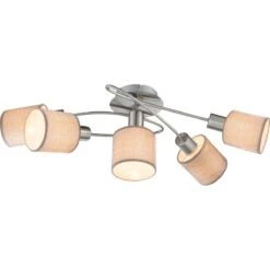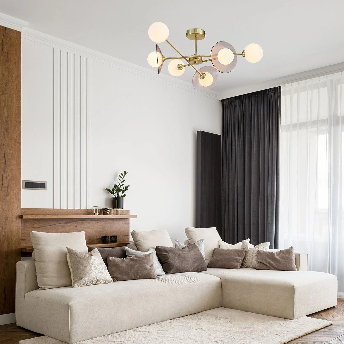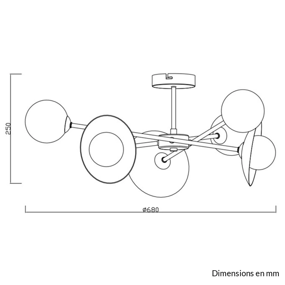Découvrez le charme authentique, contemporain et tendance de ce magnifique plafonnier de la collection DPINK. Fabriqué dans une structure en métal avec une belle couleur laiton, il possède six points lumineux eux-mêmes conçus en verre opale blanc pour vous procurer un éclairage chaleureux au quotidien, mais néanmoins fonctionnel. Ce plafonnier DPINK sera parfait dans votre salon pour éblouir votre décoration intérieure, ou bien au-dessus de votre table à manger pour illuminer vos moments de partage en famille ou entre amis. Il sera également idéal pour une grande entrée, une montée d’escalier ou une pièce avec une grande hauteur sous plafond pour un éclairage plus fonctionnel et accueillant. Notre coup de cœur : le sublime détail des coupelles en verre rose en guise d’abat-jour sur trois points lumineux, la petite note qui fera sans aucun doute la différence ! Luminaire équipé de six douilles G9 compatibles avec six ampoules d’une puissance maximale de 33W chacune, soit 6x33W (ampoules non incluses). Dimensions : hauteur 25cm x diamètre 68cm. Existe également dans la même collection DPINK en version suspension cascade, lampadaire ou bien applique murale.