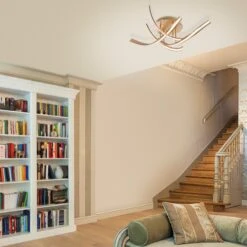 On pourrait facilement confondre le plafonnier LED design LINDA avec une œuvre d’art. Son design très travaillé est composé de trois bras qui s’entremêlent dans un motif aérien et contemporain. Élégamment placé dans un séjour ou une salle à manger, le plafonnier LINDA apportera du raffinement à votre pièce. Aucun doute que tous les regards seront attirés par ce magnifique luminaire ! Ses ampoules LED, en plus d’être économe en énergie, diffusent une belle lumière d’un blanc chaud de 3000 kelvins rendant votre intérieur chaleureux et agréable. Existe dans la même série LINDA en coloris argenté mais aussi en version plafonnier 2 bras, lampadaire et lampe de salon.