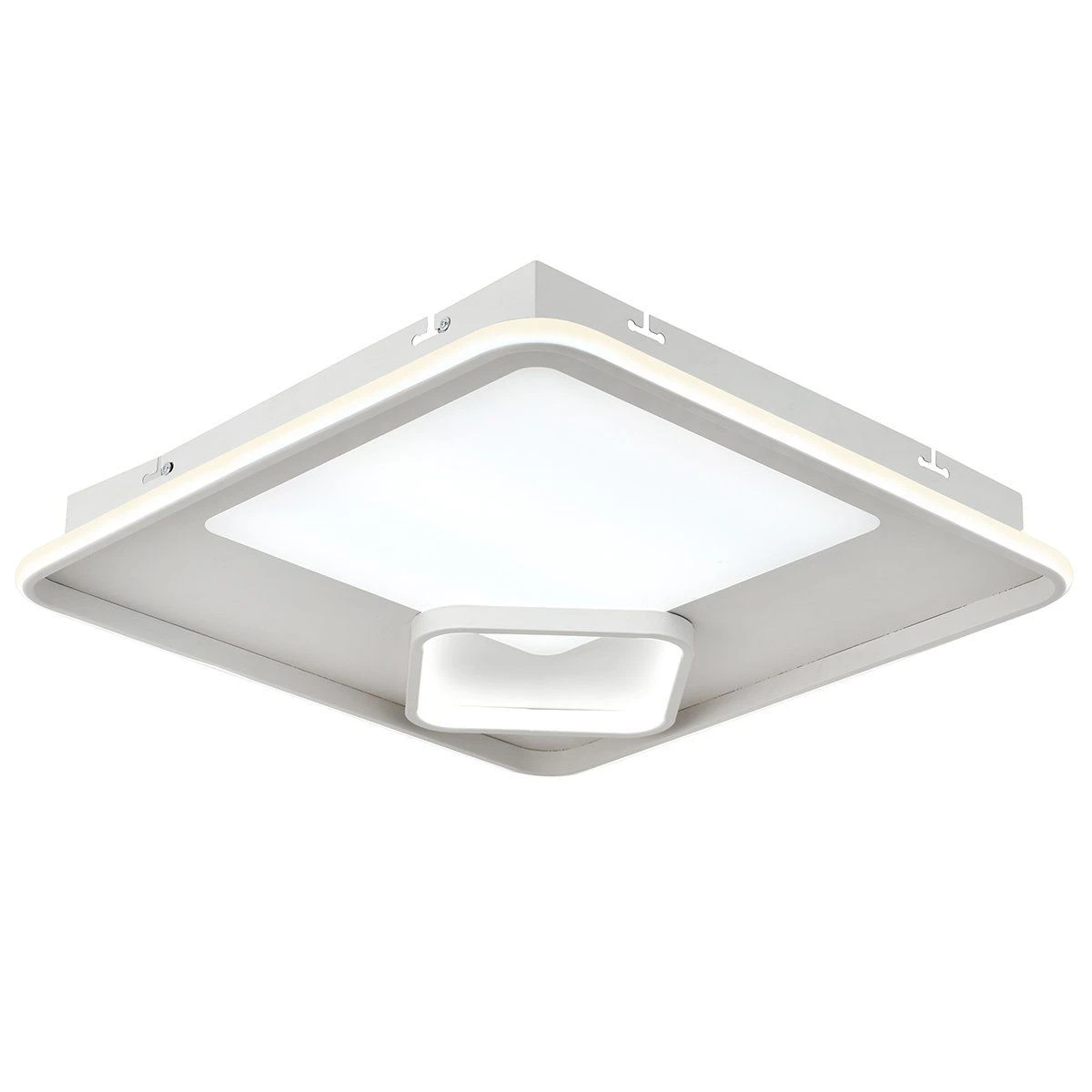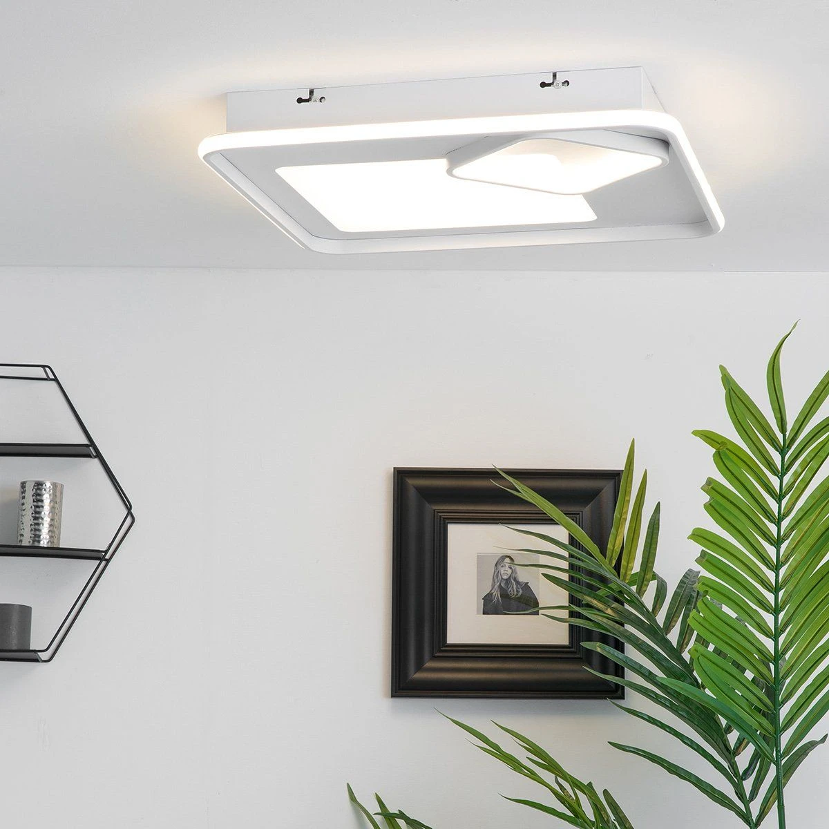 Ce plafonnier design KVAD ne manquera pas de vous séduire par son esthétique moderne et tout en élégance. Son style remarquablement contemporain s’imposera sans aucun doute dans votre aménagement pour venir sublimer votre décoration intérieure. Sa structure aux lignes carrées met en scène la lumière de façon captivante … Fabriqué en métal dans une jolie couleur blanche, ce luminaire est équipé de la technologie LED intégrée pour vous procurer un éclairage intense de 3100 lumens, faible en consommation d’énergie (50W) et durable dans le temps. Ce plafonnier tendance trouvera parfaitement sa place dans votre couloir ou votre entrée pour un éclairage fonctionnel, ou bien dans votre salon pour un rendu chaleureux. On aime : KVAD dispose de la technologie « dim-to-warm », autrement dit d’un variateur de température de couleur. Vous pourrez ainsi faire varier votre lumière au cours de la journée en fonction de vos besoins, pour créer des ambiances lumineuses individuelles d’un blanc chaud de 3100 kelvins à un blanc froid de 6500 kelvins. Télécommande incluse. Dimensions : 59x59cm et hauteur 6cm.