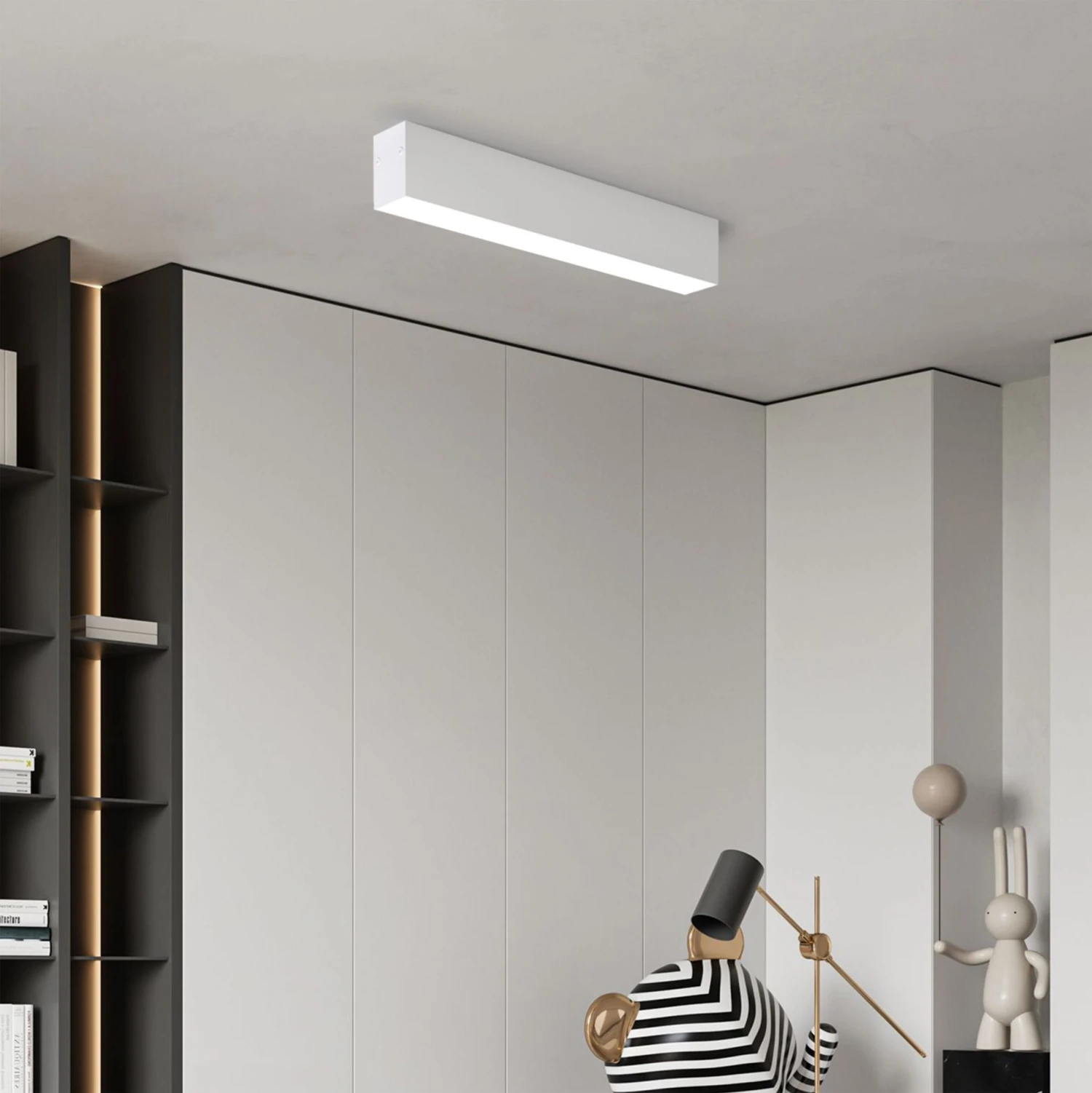 Un look moderne et un charisme contemporain, craquez pour ce superbe plafonnier de la collection LINEAR. Fabriqué en aluminium blanc dans une jolie finition mate, ce plafonnier à la structure minimaliste apportera un véritable coup de boost à votre décoration intérieure. Idéal au-dessus de votre table à manger pour accompagner vos moments de partage en famille ou entre amis, le plafonnier LINEAR trouvera tout autant sa place dans votre salon pour sublimer votre aménagement ou bien dans une entrée/couloir pour une lumière plus accueillante et fonctionnelle. Luminaire équipé de la technologie LED intégrée pour vous faire profiter au quotidien d’un éclairage doux, chaleureux et homogène tout en restant fonctionnel (1500 lumens – 3000 kelvins), mais également durable dans le temps et faible en consommation d’énergie (10W). Dimensions : hauteur 6cm x longueur 40cm x profondeur 4.5cm. Existe également dans la même collection LINEAR en coloris noir en version longueur 100cm ou bien en longueur 60cm.